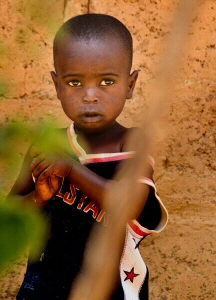 This young Zambian boy looks out nervously from behind a bush. He might well ponder what the future holds for him ... |